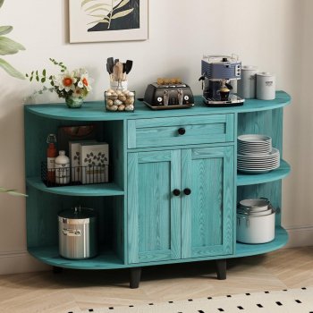 Vintage Blue Sideboard Buffet Cabinet with Power Outlets and Storage