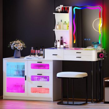 Large Makeup Vanity Desk with Mirror, RGB Lights & Charging Station