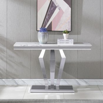 46.85″ White Faux Marble Console Table with Stainless Steel D-Base