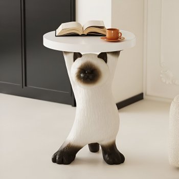 Cute Siamese Cat Figurine with Storage Tray
