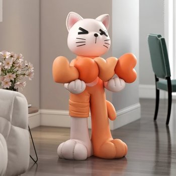 Nordic Lucky Cat Floor Statue – Modern Resin Animal Art Decor for Living Room