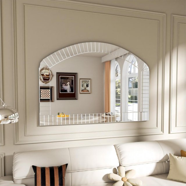 With its elegant arched form and luminous silver finish, this decorative wall mirror turns any plain wall into a stylish statement. It not only serves as a functional mirror but also doubles as a piece of wall art that enhances natural light and makes your home feel more open and inviting. Bring beauty, brightness, and balance into your home with this exquisite arched accent mirror — the perfect finishing touch for your décor. Add it to your cart today and reflect your style with sophistication.