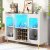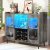 Modern Wine Bar Cabinet with LED Lights, Power Outlet & Glass Holder