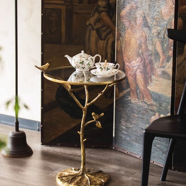 Retro Brass Bird Round Side Table – Luxury Metal & Glass Coffee Table
