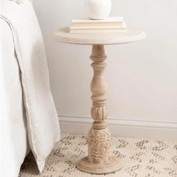 Hingham Vintage Whitewash Round Wooden Side Table