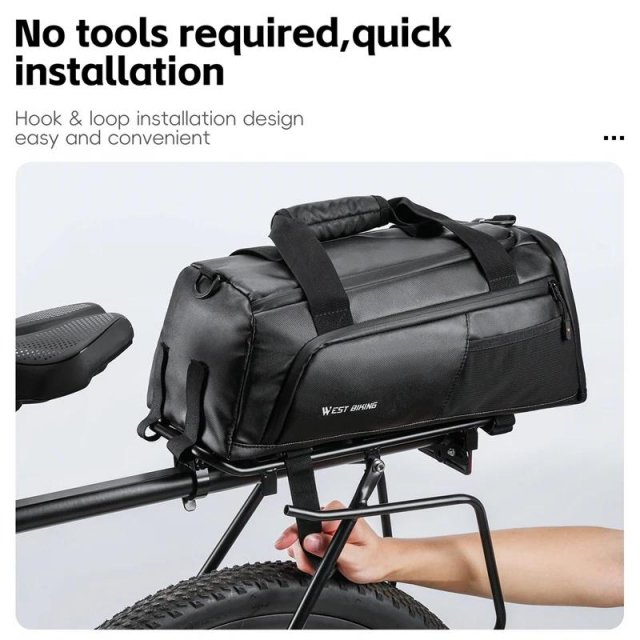 Waterproof 13L Rear Rack Bike Bag – Multifunction Travel & Commuter Storage